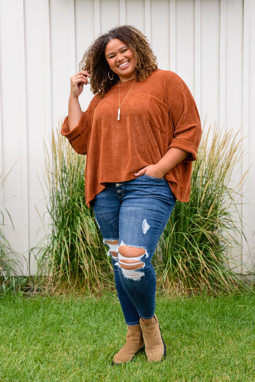 The Ari Hi-Rise Button Fly Cuffed Skinny is a must have fall denim staple! We are in love with this hi-rise button fly and dark wash stretchy denim. The distressed knees add an edgy and trendy vibe to any look you're going for. These jeans will look fabulous with all your sweaters and tops!