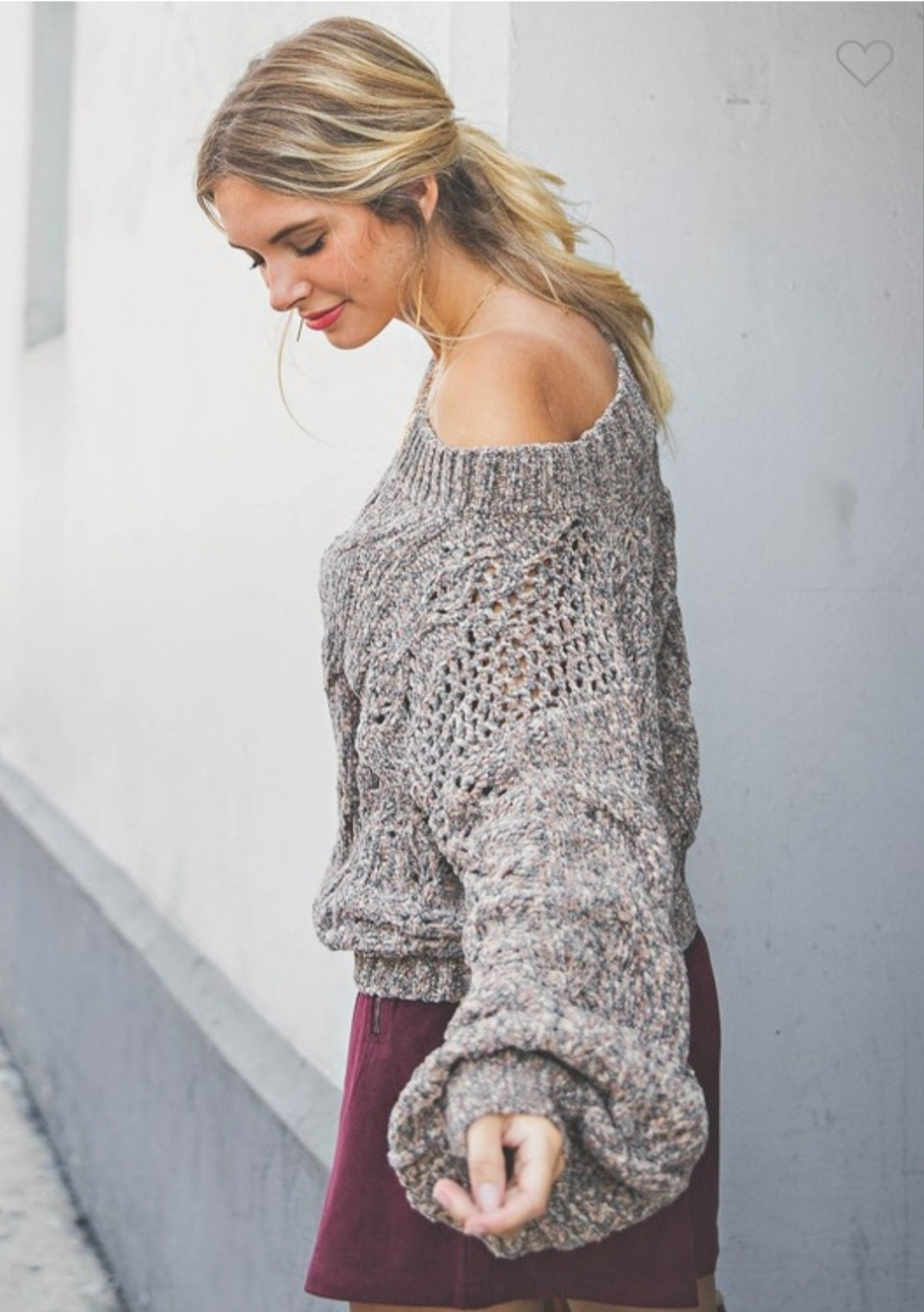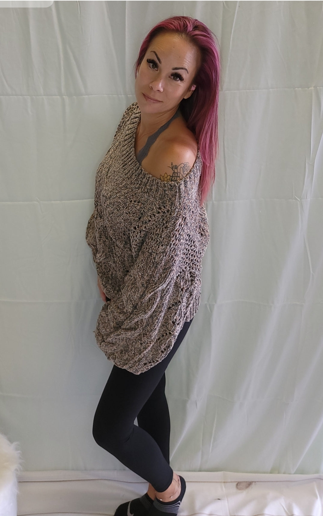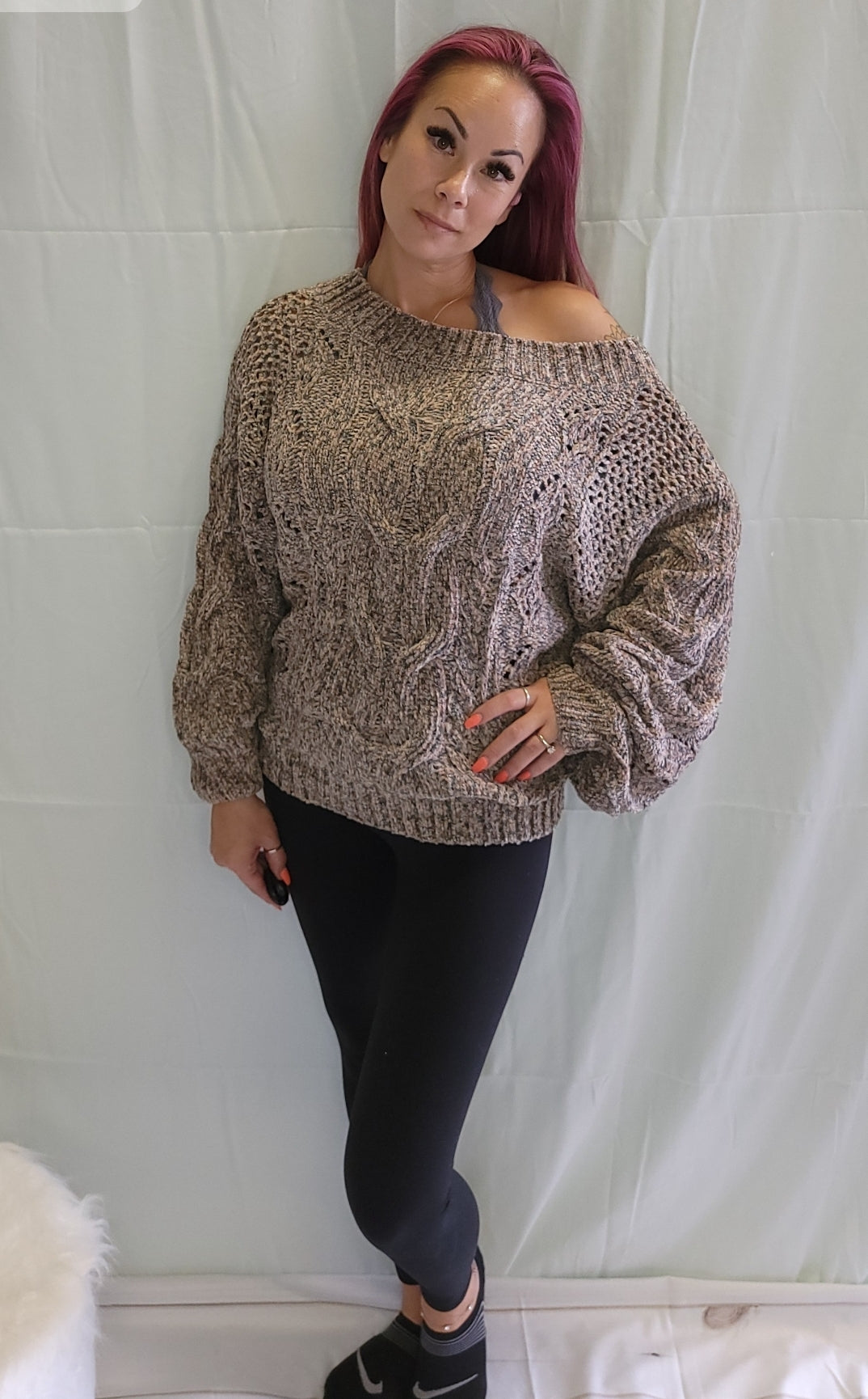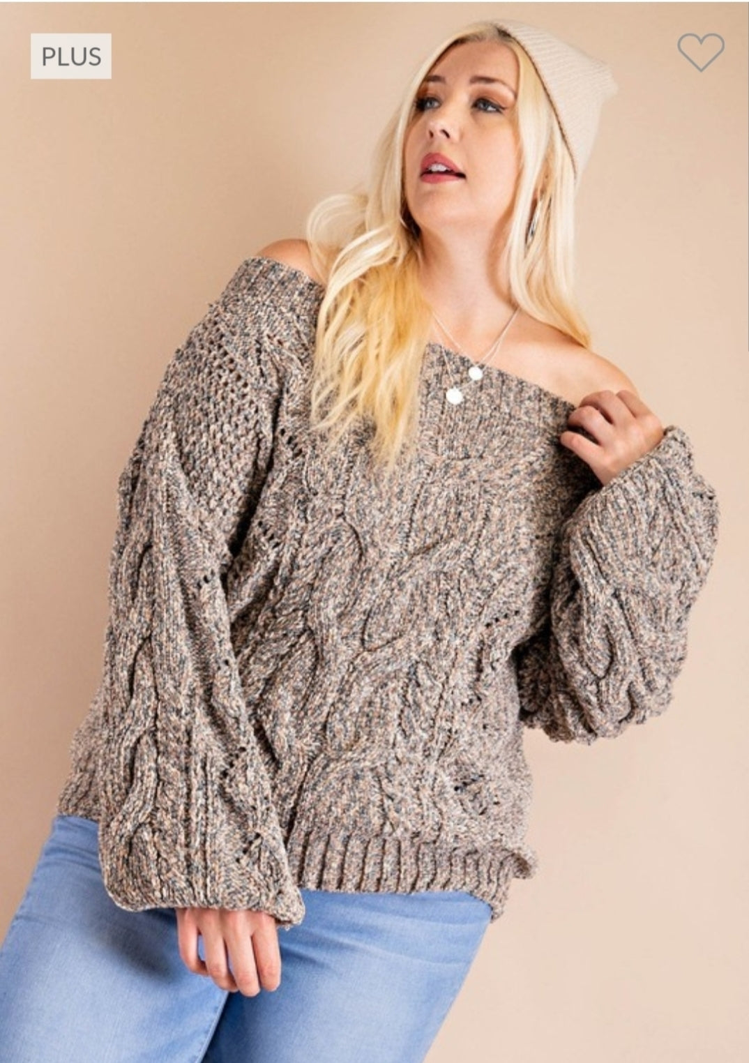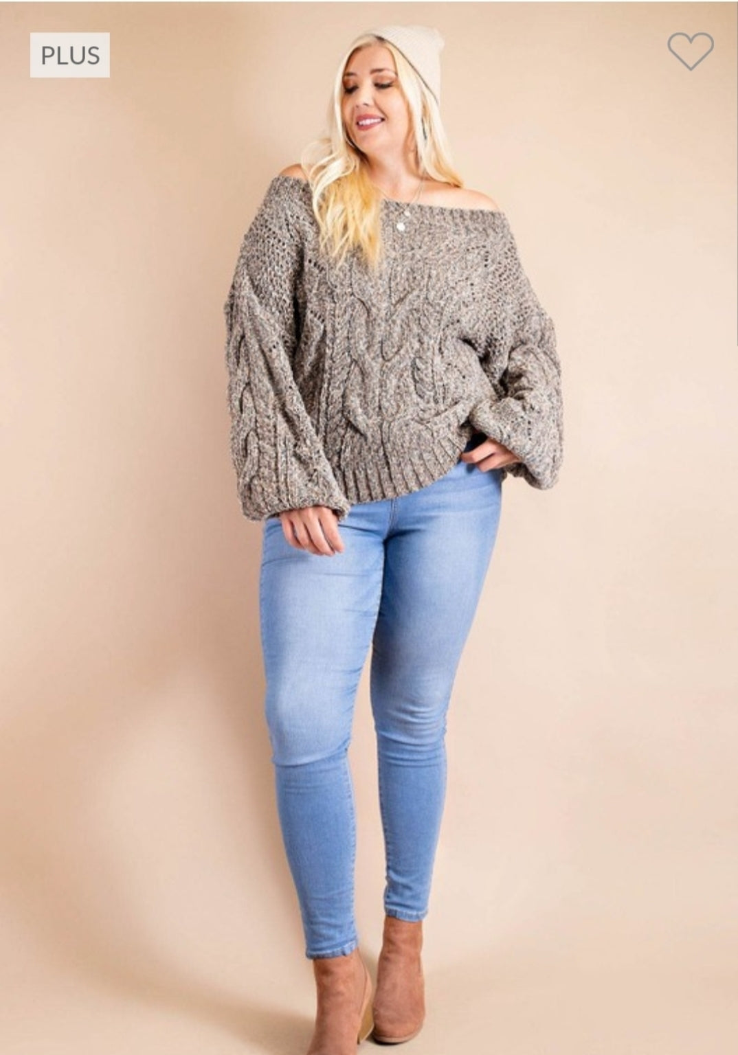 loving the multi color cable knit. The neckline is long and can be worn over the shoulder! This one looks so cute paired with our Kancan Jeans or relax at home and throw on Some leggings with it.