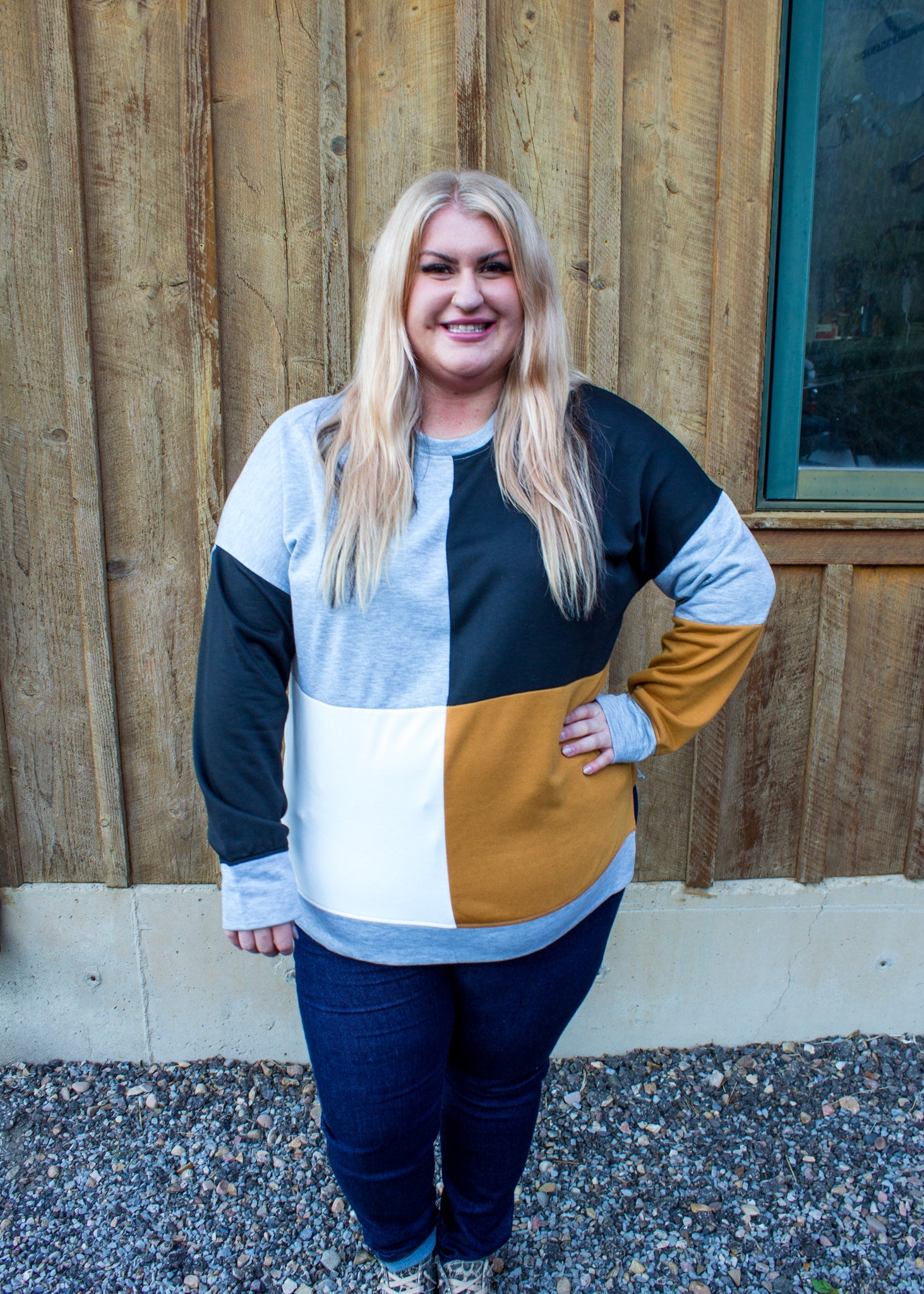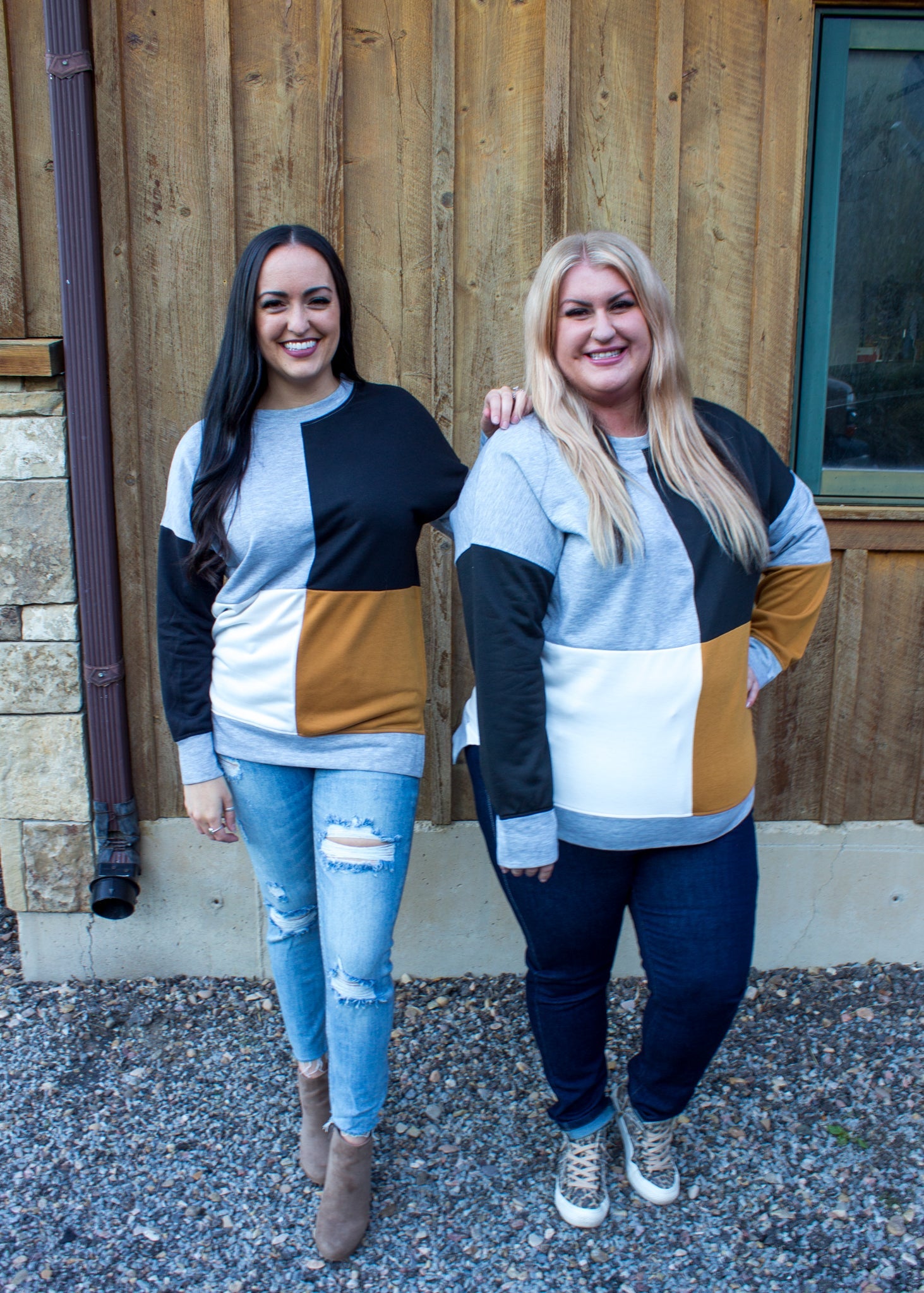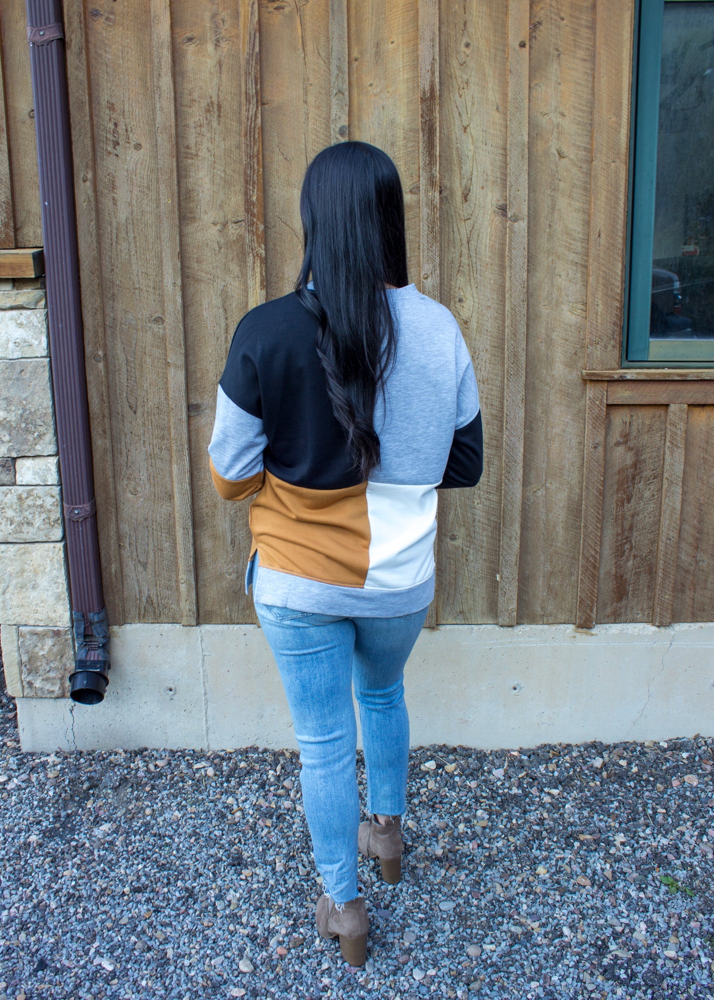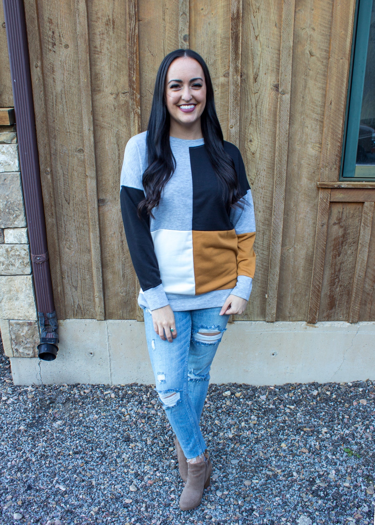 The Adriana color block is the classic trendy style that will be in your closet for years to come! With beautiful shades of camel, midnight black, and soft grey.