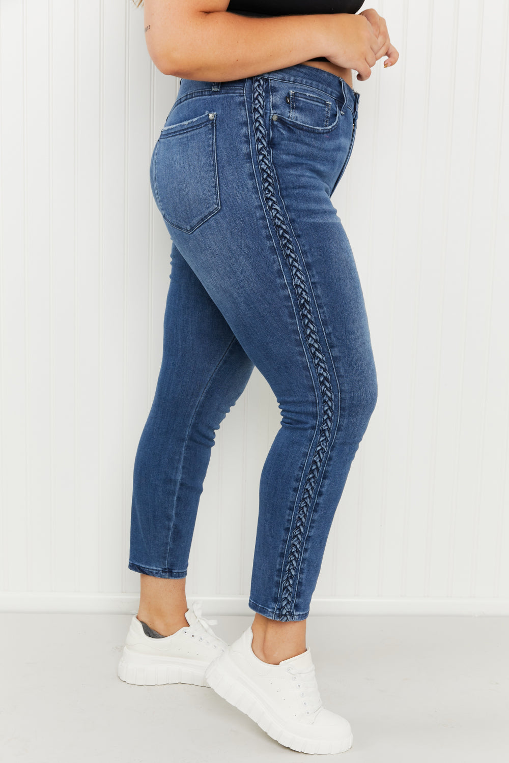 Judy Blue Stevie Mid-Rise Braided Detail Relaxed Jeans