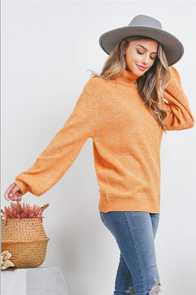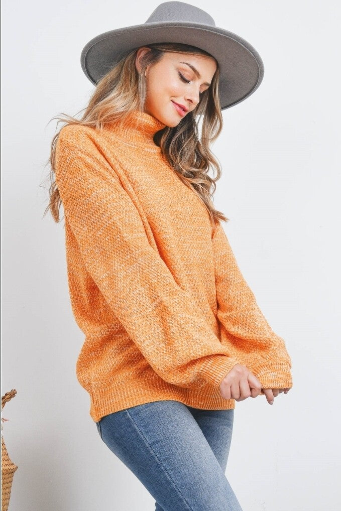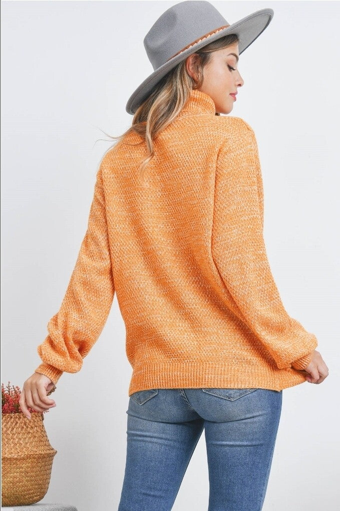 TURTLENECK MELANGE BALLOON SLEEVE SWEATER